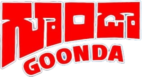 Goonda is action oriented movie in which, Crime king Kalidas (Chiranjeevi), one fine day, Kalidas tries to running away in his Jeep with his god father, and unexpectedly their jeep meets with an accident.After accident, a tranformed kalidas decides to live as a normal man under the new name of Raja.He meets his father ananda rao and his family. His childhood friend and neighbour Jaya (radha) comes back into his new found life.Anandrao attempts to stop the rice smuggling by Dharmayya and Kailasam. They both trap Raja into a case and Raja goes to jail.Later, when raja learns that dharmayya and kailasam are planning big,he escapes from jail and saves a train from being Bombed by Dharmaraja and kailasam, and in the end again surrenders himself to the police.